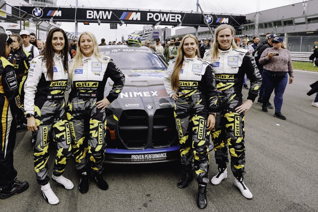 Starting the event on a high in the all-new G82 series BMW M4 GT4, with all-women management and pit team, started at the very rear due to a controversial technical offence. Technical issues continued through the weekend with the transponder for time measurement breaking down which requires an immediate and lengthy change and a no-fault accident early on the Sunday morning broke the rear axle. Despite this, with grit and determination, they fought their way back from two laps down to lead the SP8T class.